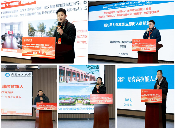 交流研讨环节,beat365在线唯一官网刘洋、合肥工业大学李加好、安徽理工大学李传明、安徽新华学院蒋亚龙、池州职业技术学院徐洪武等5位支部书记分别结合党建工作实际,详细介绍了各支部在凝聚党员力量、推动学科建设、破解发展难题、培育专业人才、服务社会发展等方面的创新做法和显著成效,为各基层党支部深化党建与业务融合、提升支部建设水平和学科核心竞争力提供了丰富思考和有益借鉴。
